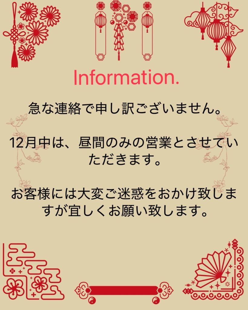 Information.12月の営業について。